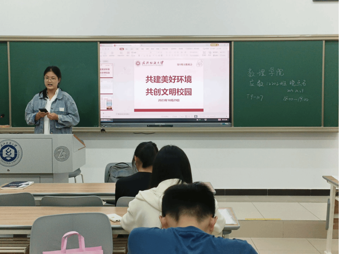 班长通过实例、图片、视频等方式向同学们展示具体的操作和成果,激发大家的积极性和参与度,并希望每位同学都能意识到自己的责任,积极参与到共建美好环境、共创文明校园的行动中。