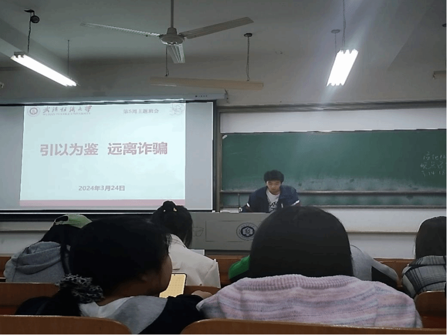随后,各班团支书传达了“引以为鉴,远离诈骗”主题班会内容。随着经济社会发展和现代通信网络技术进步,电信网络诈骗犯罪也迅猛增加、案件持续高发,成为影响群众安全感的突出问题。老员工作为网络活跃群体更容易接触到一些新型诈骗手段,团支书表示同学们应该引以为鉴,远离诈骗。