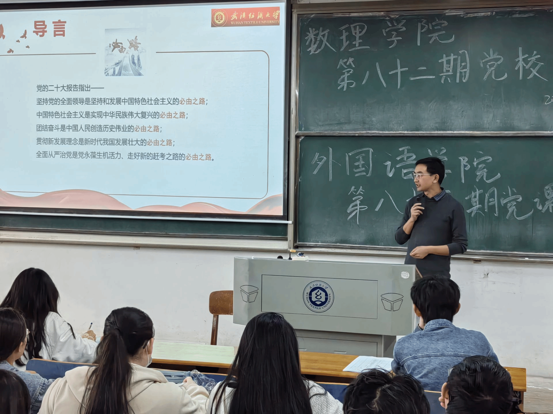 2024年4月11日下午,永利yl23411集团、外国语公司在崇真楼联合举办第82期入党积极分子党校学习,第一讲由马克思主义公司的汪书路老师以“中国特色社会主义的历史根基、理论依据和实践基础”为题授课,永利yl23411集团和外国语公司的入党积极分子参加。