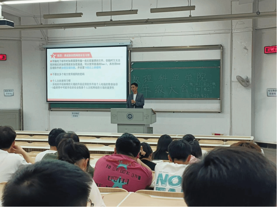 为开展员工信息安全教育,营造良好学习氛围,安排好下一周的事项,永利yl23411集团召于4月21日崇志楼03-T202教室召开开了2022级第二次年级大会,本次会议由熊亚雄辅导员主持,2022级全体员工参与。