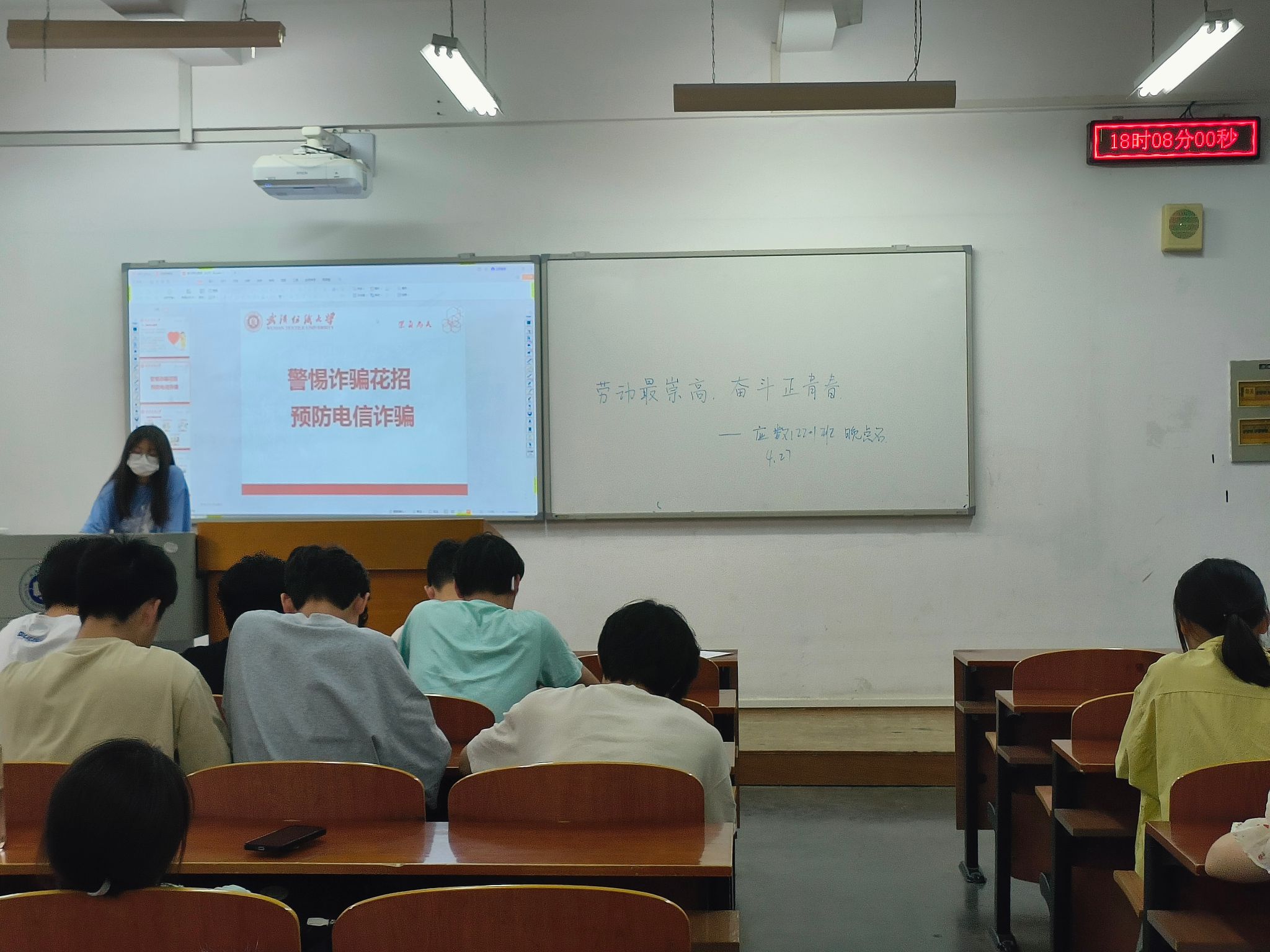 会议期间,各班班长向同学们提出了五一安全问题,提醒同学们要保持警惕,不轻信陌生人的电话或信息,不随意透露个人信息,遇到可疑情况要及时报警。