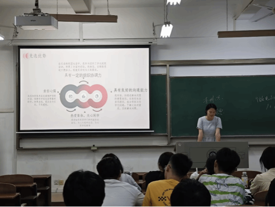 会议的最后,2024级各班开展军训联络员的选拔,经过参与竞选同学们的自我推荐及班级同学的投票选举后,各班级顺利选取出各班级的军训联络员,为军训期间处理班级事务、维护班级秩序起到重要的铺垫作用。