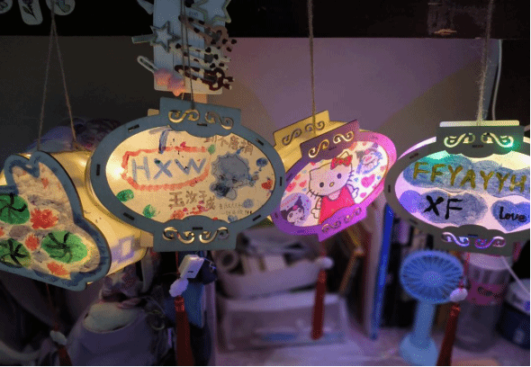 在本次灯笼制作活动中,同学们尽情发挥自身独特的绘画才能,创作出一系列兼具传统韵味与时尚感的灯笼作品。从经典的六边形、六角形灯笼,到极具创意的动物造型、扇形灯笼,每一件作品都令人眼前一亮,赞叹不已。